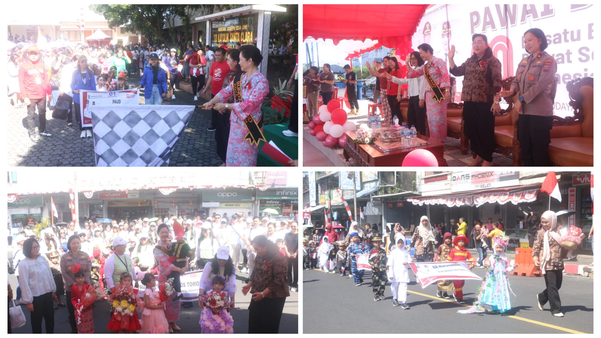 TOMOHON, Sabtu 16 Agustus 2025,– Bunda Paud Kota Tomohon drg. Jeand’arc Senduk-Karundeng melepas pawai bocah dalam rangka memperingati Hari Kemerdekaan Republik Indonesia Ke- 80 di Kota Tomohon.