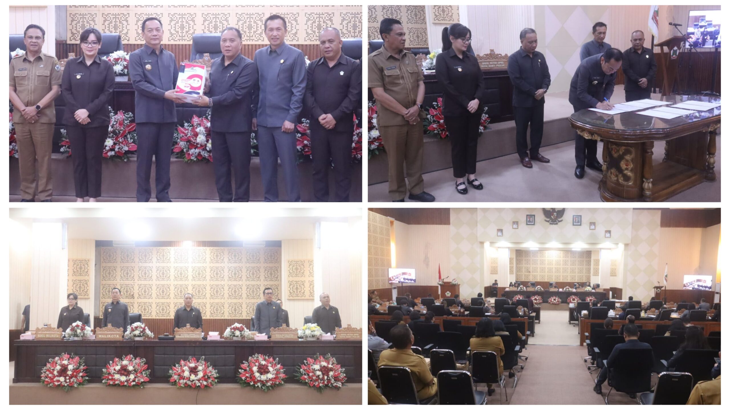 TOMOHON – Wali Kota Tomohon Caroll J. A. Senduk, S.H. bersama Wakil Wali Kota Sendy G. A. Rumajar, S.E., M.I.Kom. menghadiri Rapat Paripurna DPRD Kota Tomohon dalam rangka Penyampaian Laporan Badan Anggaran, Pendapat Akhir Fraksi-fraksi, serta Pendapat Akhir Wali Kota terhadap Rancangan Peraturan Daerah (Ranperda) tentang Perubahan Anggaran Pendapatan dan Belanja Daerah (APBD) Tahun Anggaran 2025.
