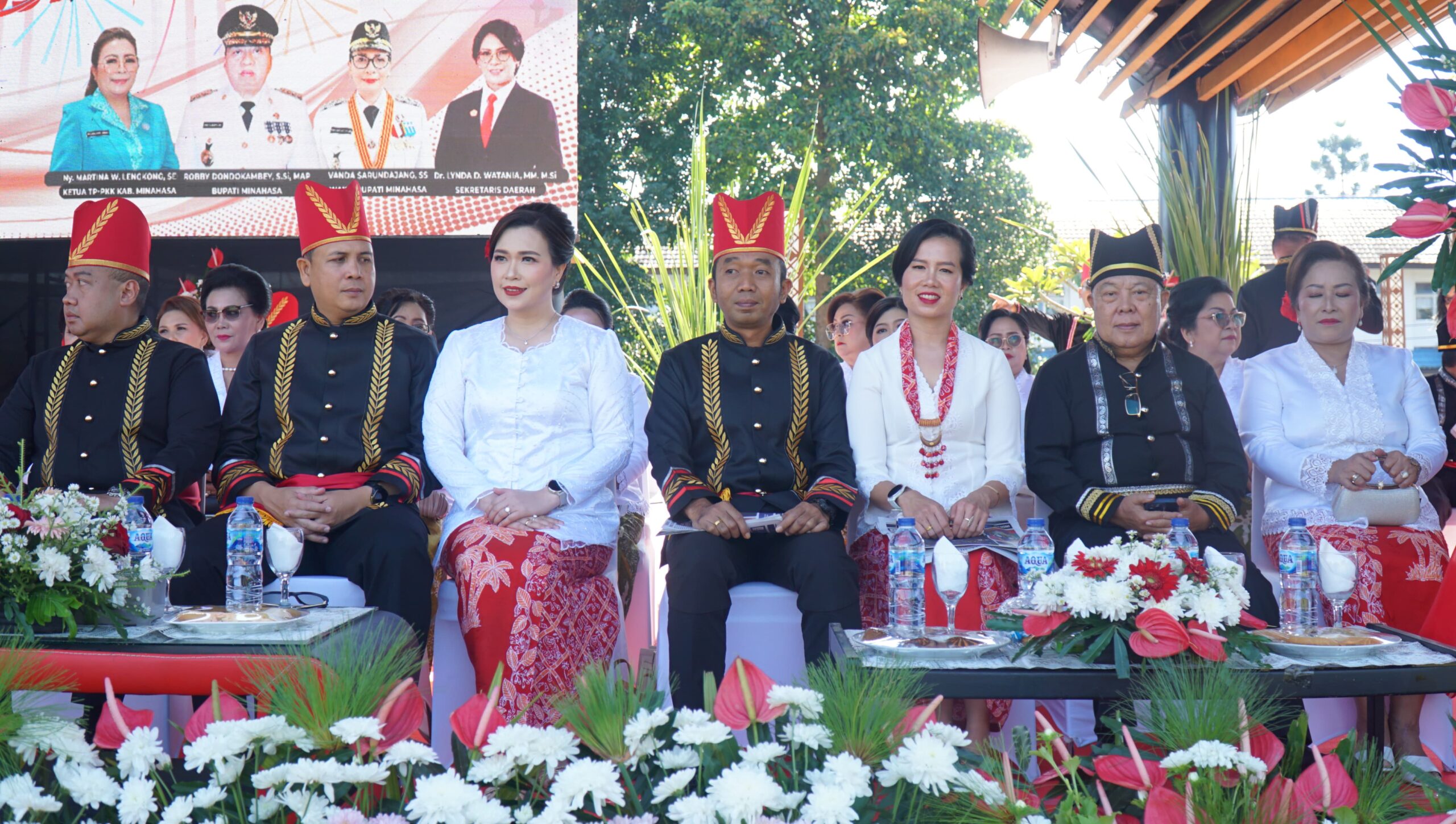 Upacara berlangsung khidmat dan penuh nuansa adat, dengan Bupati Minahasa Robby Dondokambey, S.Si., M.A.P. bertindak sebagai Inspektur Upacara, didampingi Wakil Bupati Vanda Sarundajang, S.S. serta dihadiri oleh jajaran Forkopimda Kabupaten Minahasa.