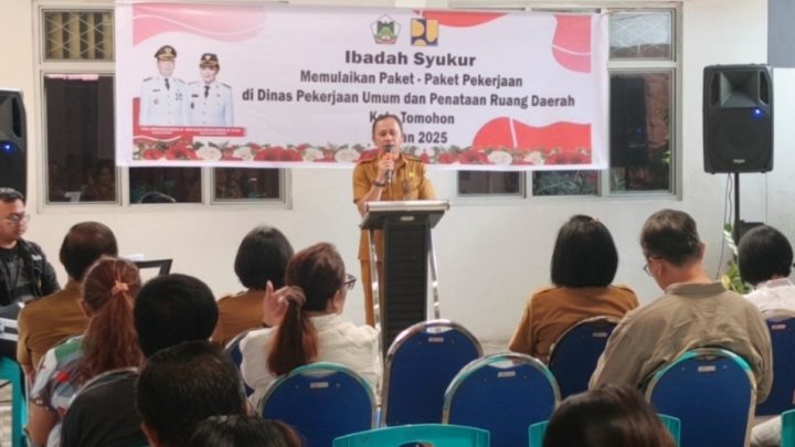 TOMOHON, – Pemerintah Kota Tomohon melakui Dinas Pekerjaan Umum dan Penataan Ruang (PUPR) Kota Tomohon menggelar Ibadah Syukur sebagai awal akan dilaksanakan Pekerjaan Proyek Pembangunan, Selasa (2/9/2025) di Dinas PUPR Kota Tomohon.