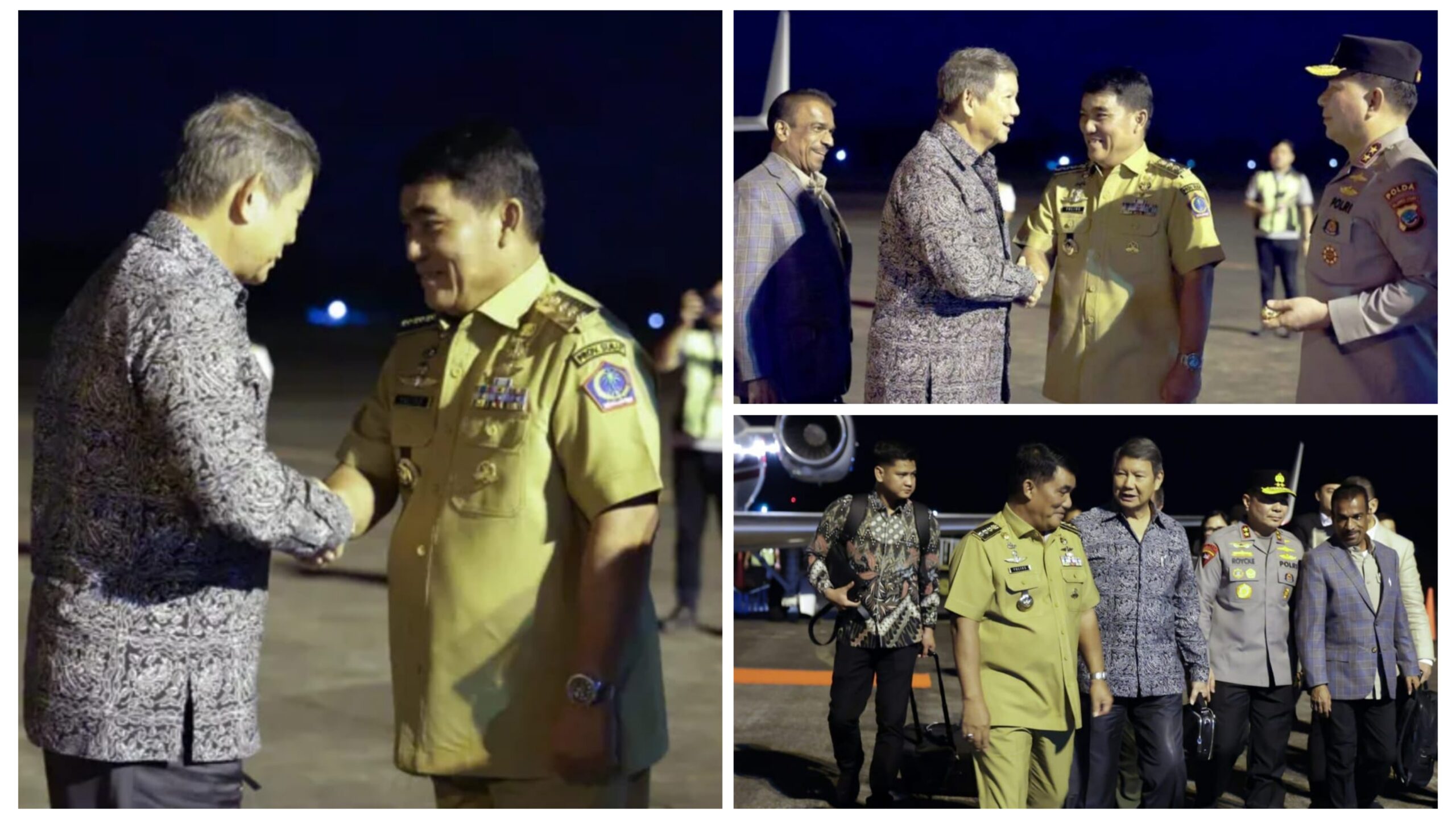 Suasana penyambutan berlangsung hangat dan penuh keakraban. Gubernur Yulius tampak menyambut langsung di pintu kedatangan VIP bersama sejumlah pejabat daerah dan unsur Forum Koordinasi Pimpinan Daerah (Forkopimda) Sulut.