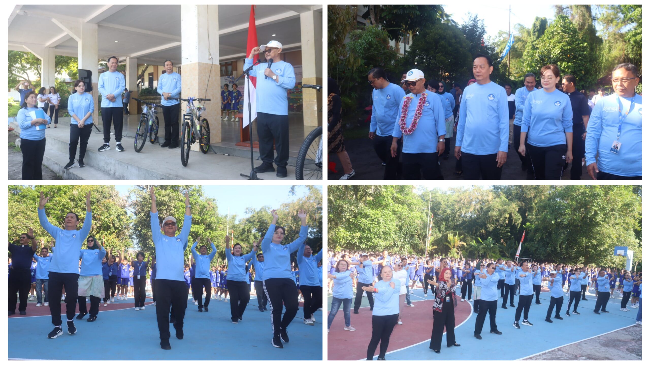 TOMOHON — Wali Kota Tomohon Caroll J. A. Senduk bersama Wakil Wali Kota Sendy G. A. Rumajar menerima kunjungan kerja Menteri Pendidikan Dasar dan Menengah Republik Indonesia, Abdul Mu’ti, Rabu (22/4/2026). Kunjungan tersebut dirangkaikan dengan kegiatan “Senam Anak Indonesia Hebat” yang digelar di SMP Katolik Stella Maris.