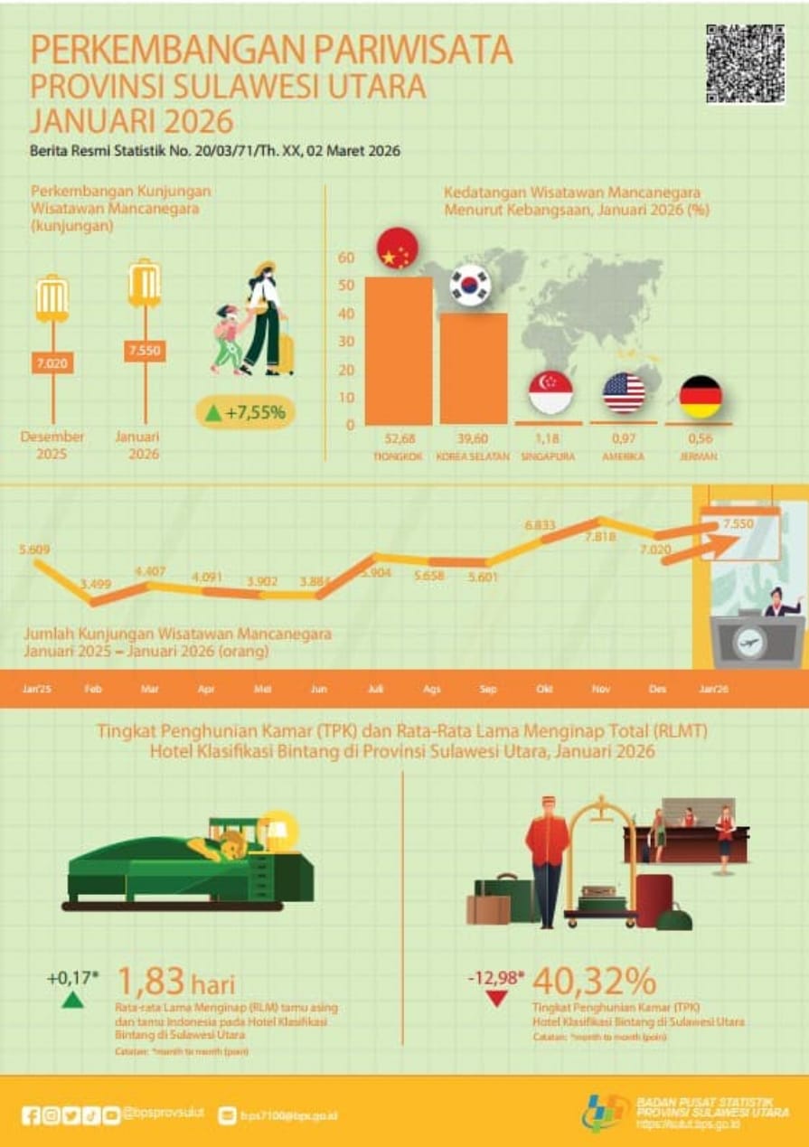 Peningkatan ini dinilai sebagai hasil dari strategi penguatan aksesibilitas dan promosi internasional yang terus digencarkan Pemerintah Provinsi Sulawesi Utara.