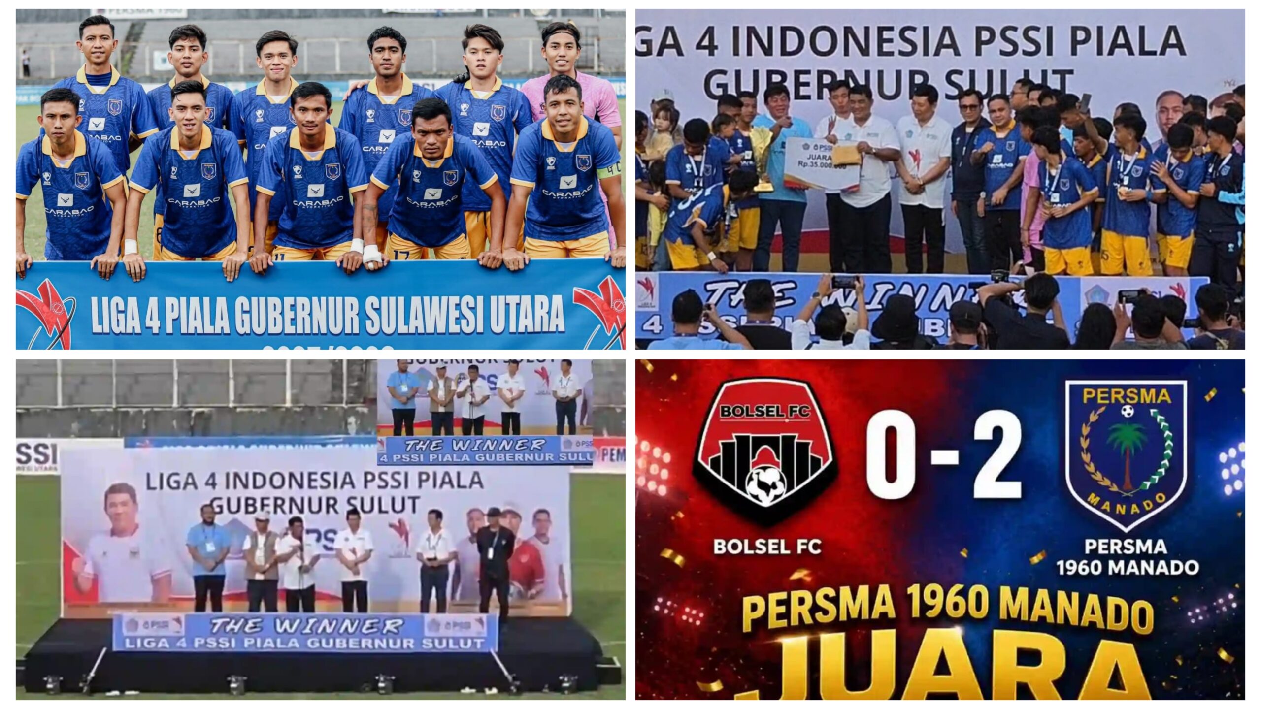 MANADO — Persma Manado memastikan diri sebagai kampiun usai menundukkan Bolsel FC pada laga final yang berlangsung di Stadion Klabat, Manado. Kemenangan tersebut sekaligus mengantar Persma mengamankan tiket promosi ke Liga 4 Nasional, mempertegas posisi mereka sebagai salah satu kekuatan baru sepak bola di Sulawesi Utara.