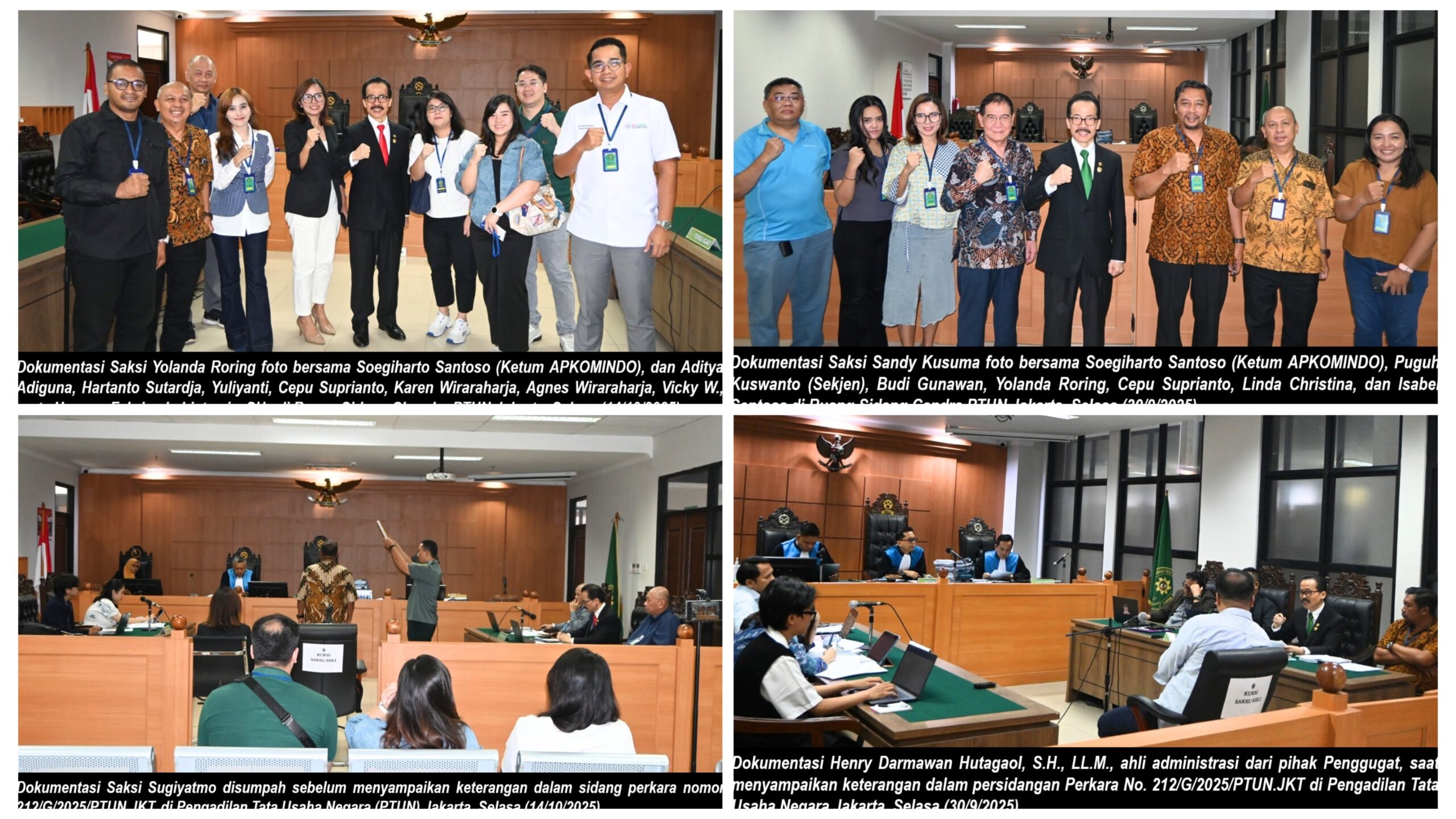 Kedua pimpinan APKOMINDO secara khusus menyampaikan penghargaan mendalam kepada para saksi yang dengan berani dan jujur menyampaikan keterangan di bawah sumpah: