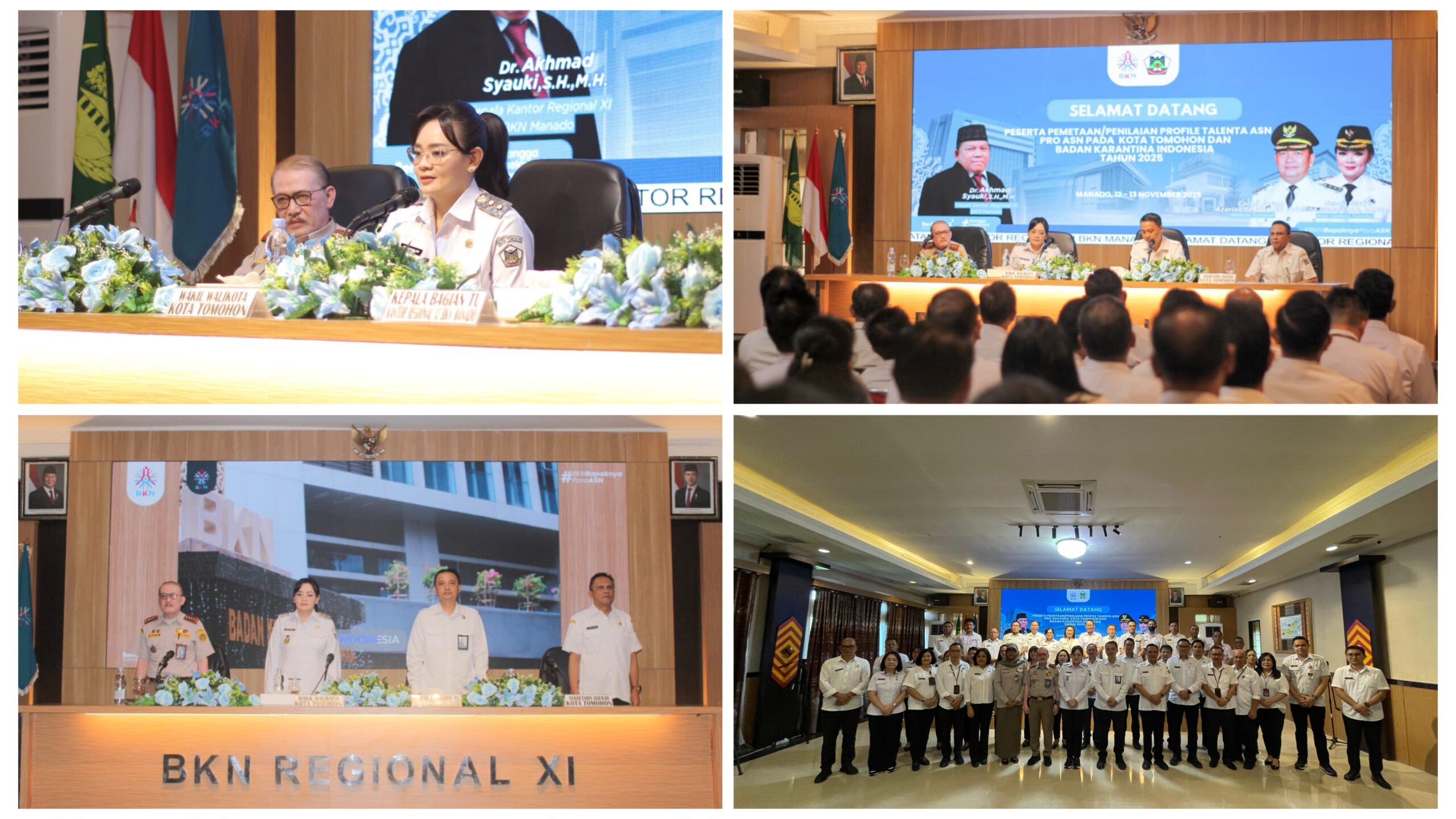 Turut hadir dalam kegiatan tersebut Kepala Kantor Regional XI BKN Manado yang diwakili oleh Kepala Bagian Tata Usaha Tonny Munayang, S.T., M.A.P., Sekretaris Daerah Kota Tomohon Edwin Roring, S.E., M.E., Kepala Balai Karantina Hewan, Ikan, dan Tumbuhan Provinsi Sulawesi Utara Agus Mugiyanto, S.P., serta jajaran Pemerintah Kota Tomohon dan para peserta assessment. (*Red)