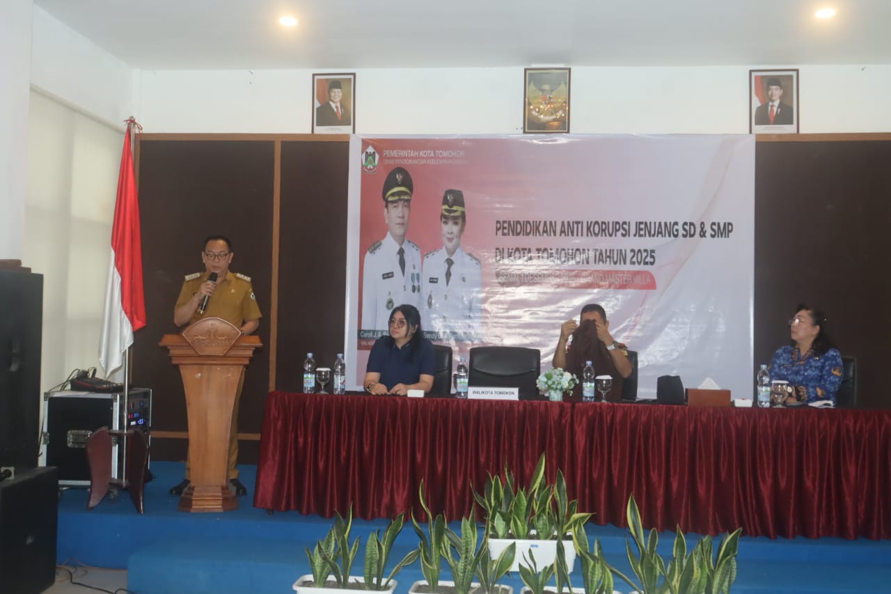 TOMOHON, 1 Desember 2025 — Wali Kota Tomohon, Caroll J. A. Senduk, SH, menghadiri sekaligus membuka secara resmi kegiatan Penguatan Kapasitas Jejaring Pendidikan Antikorupsi bagi jenjang pendidikan dasar dan menengah se-Kota Tomohon. Kegiatan ini berlangsung di Vila Grand Master dan diikuti para tenaga pendidik serta pemangku kepentingan pendidikan di daerah tersebut.