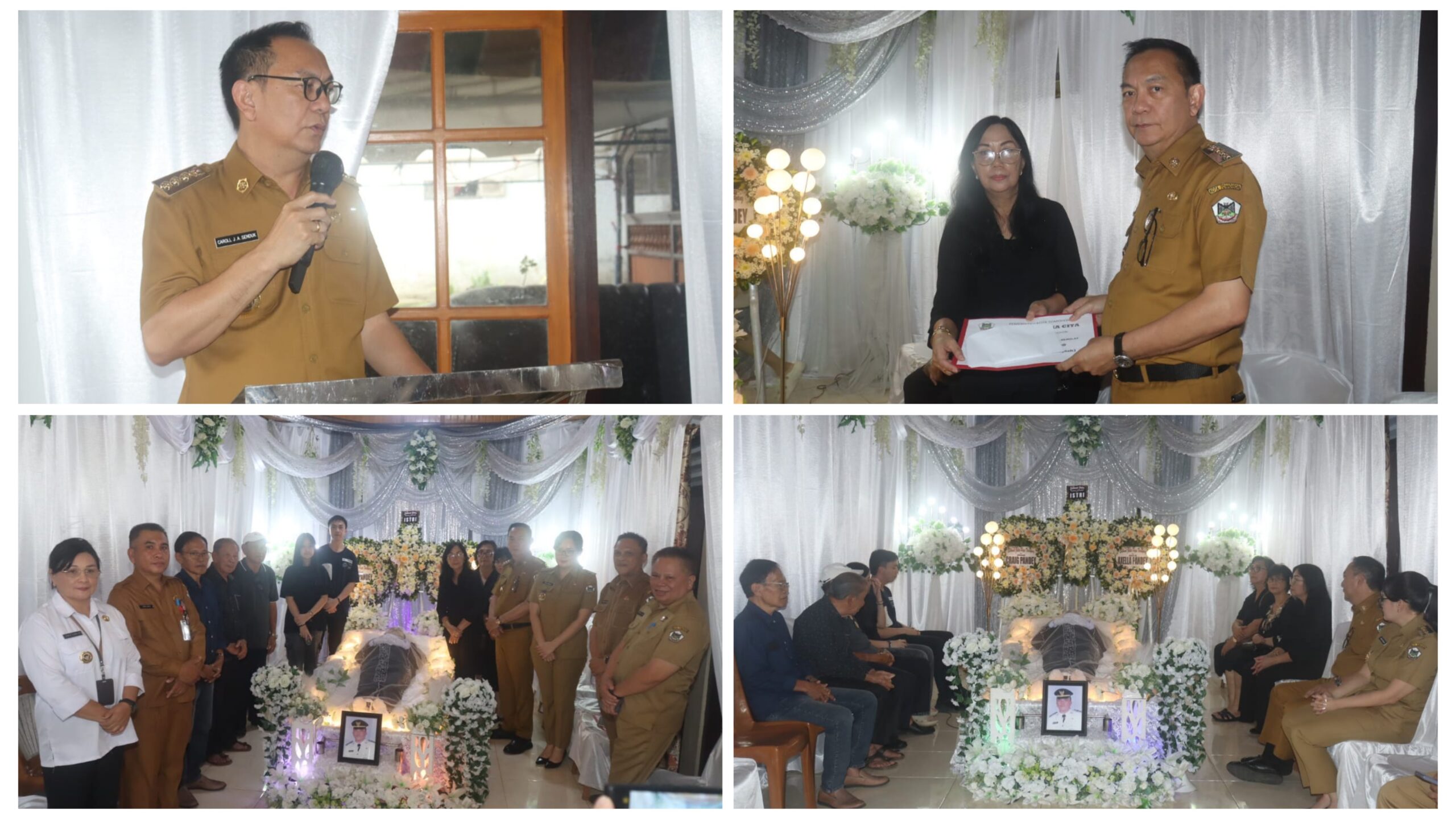 Dalam suasana haru, Wali Kota Caroll Senduk menyampaikan belasungkawa mendalam kepada keluarga yang ditinggalkan, serta memberikan penguatan agar tetap tabah menghadapi masa duka.